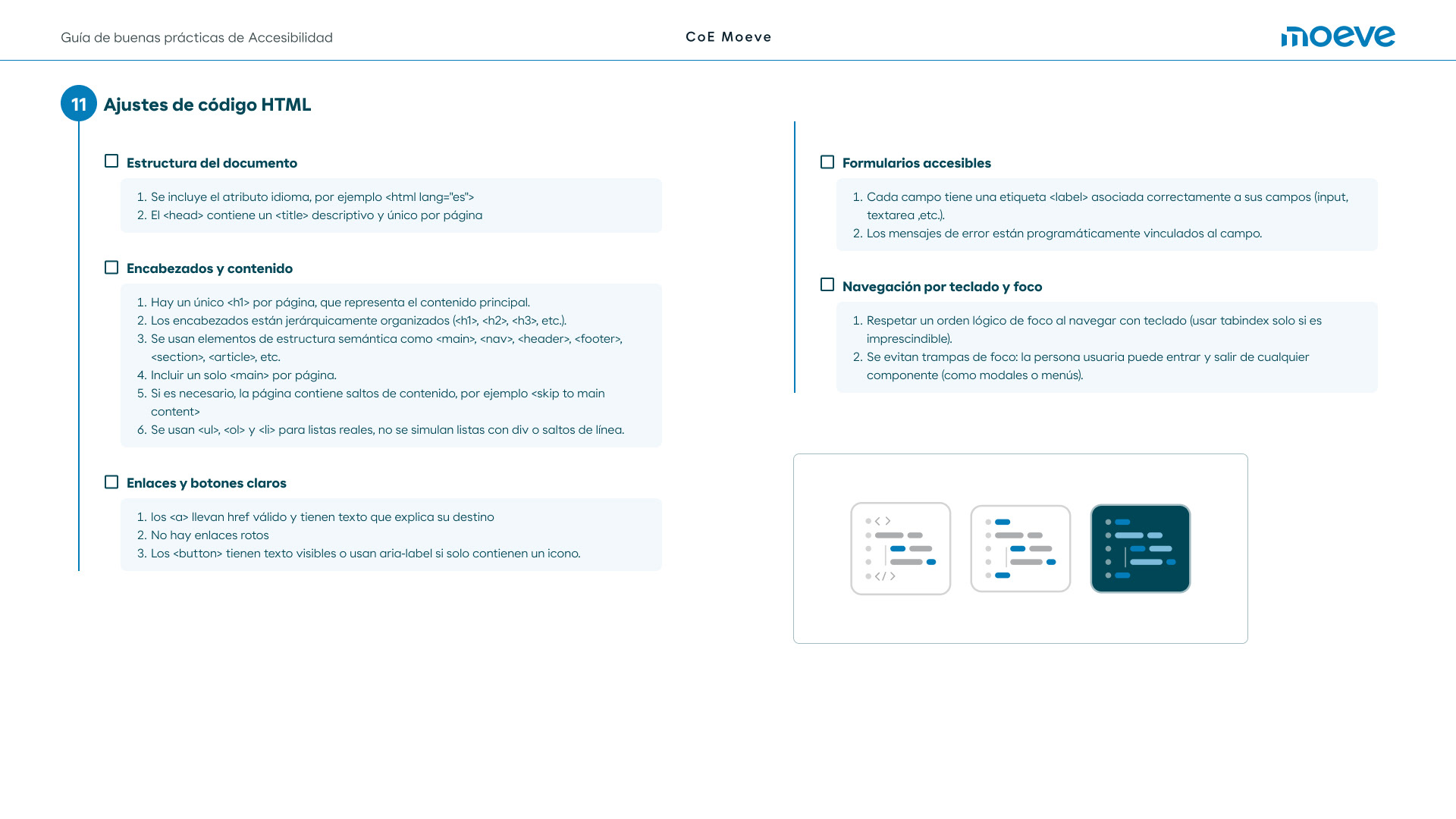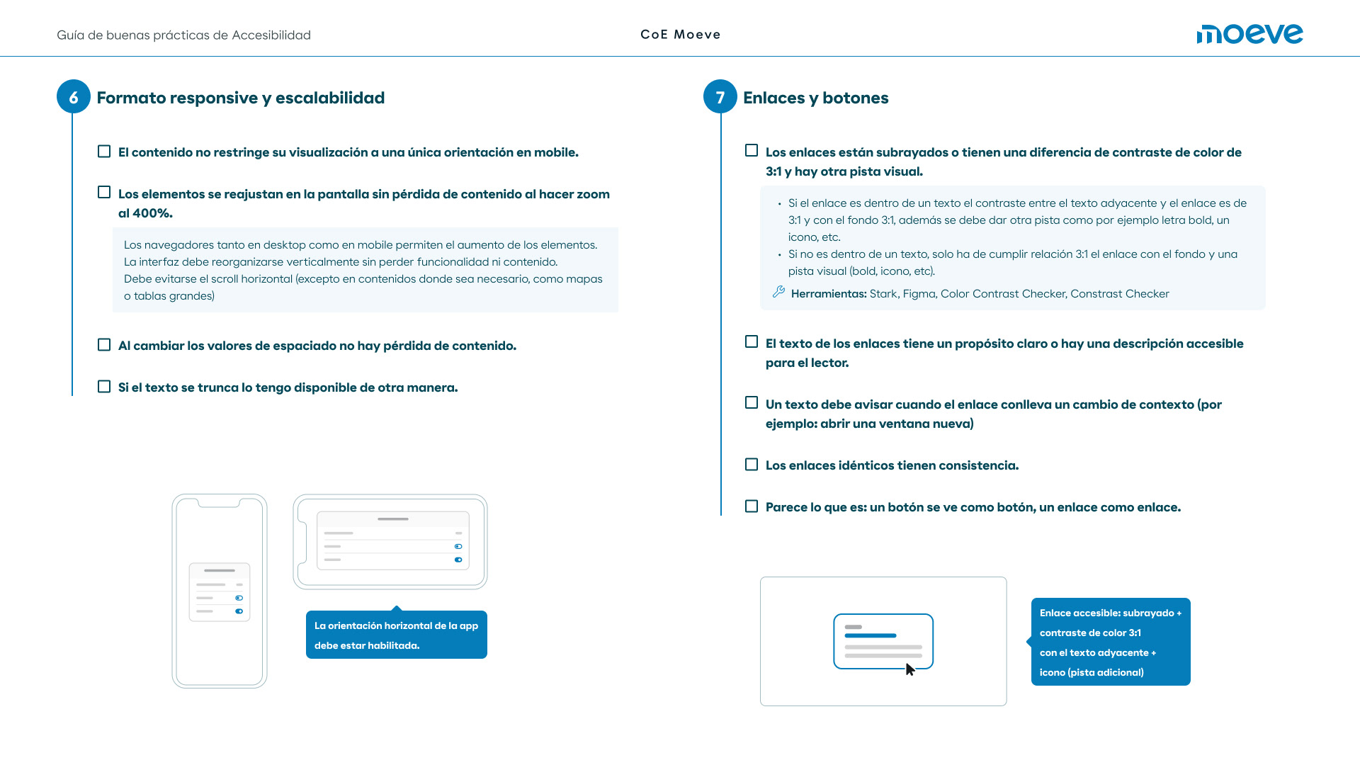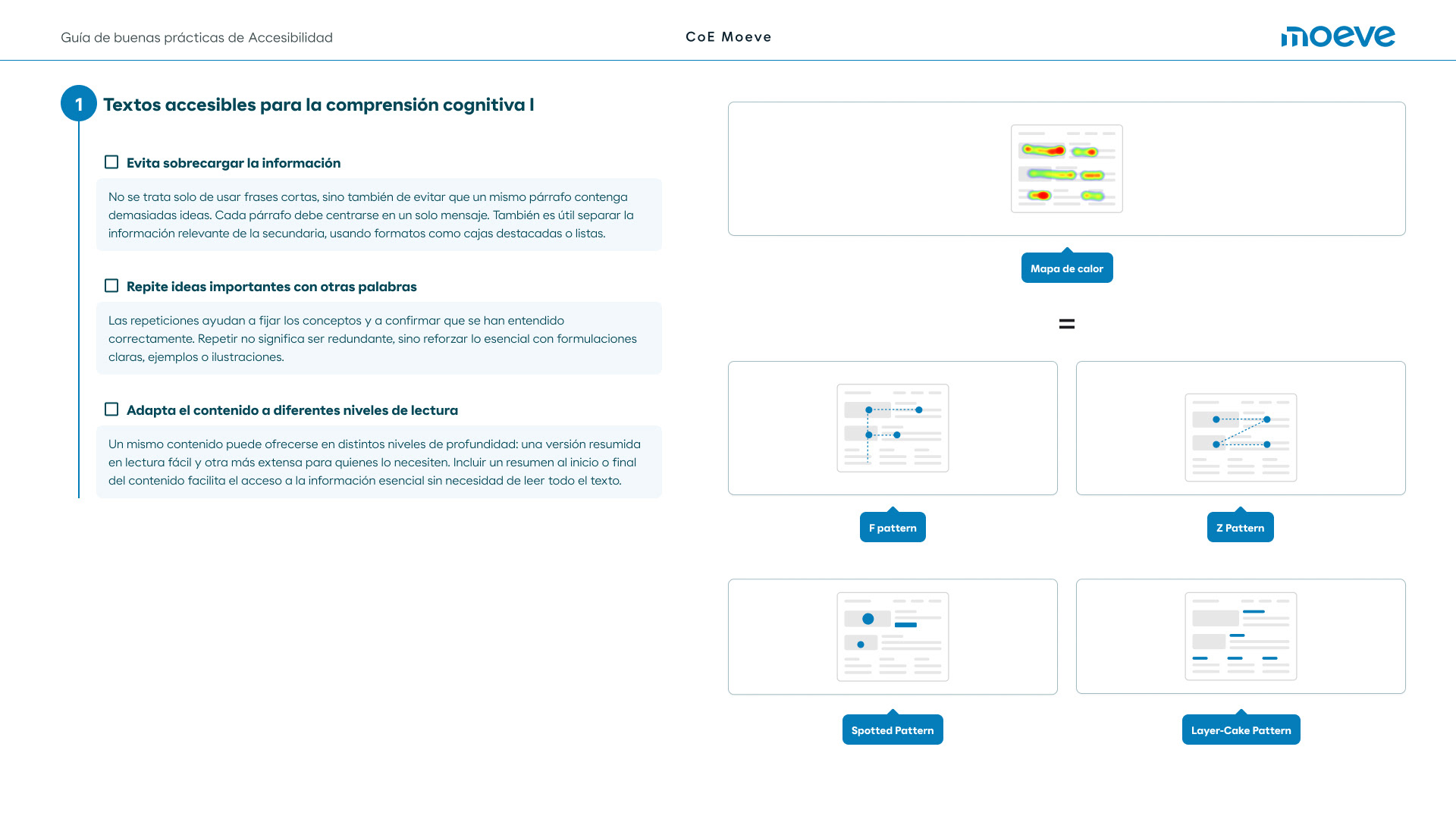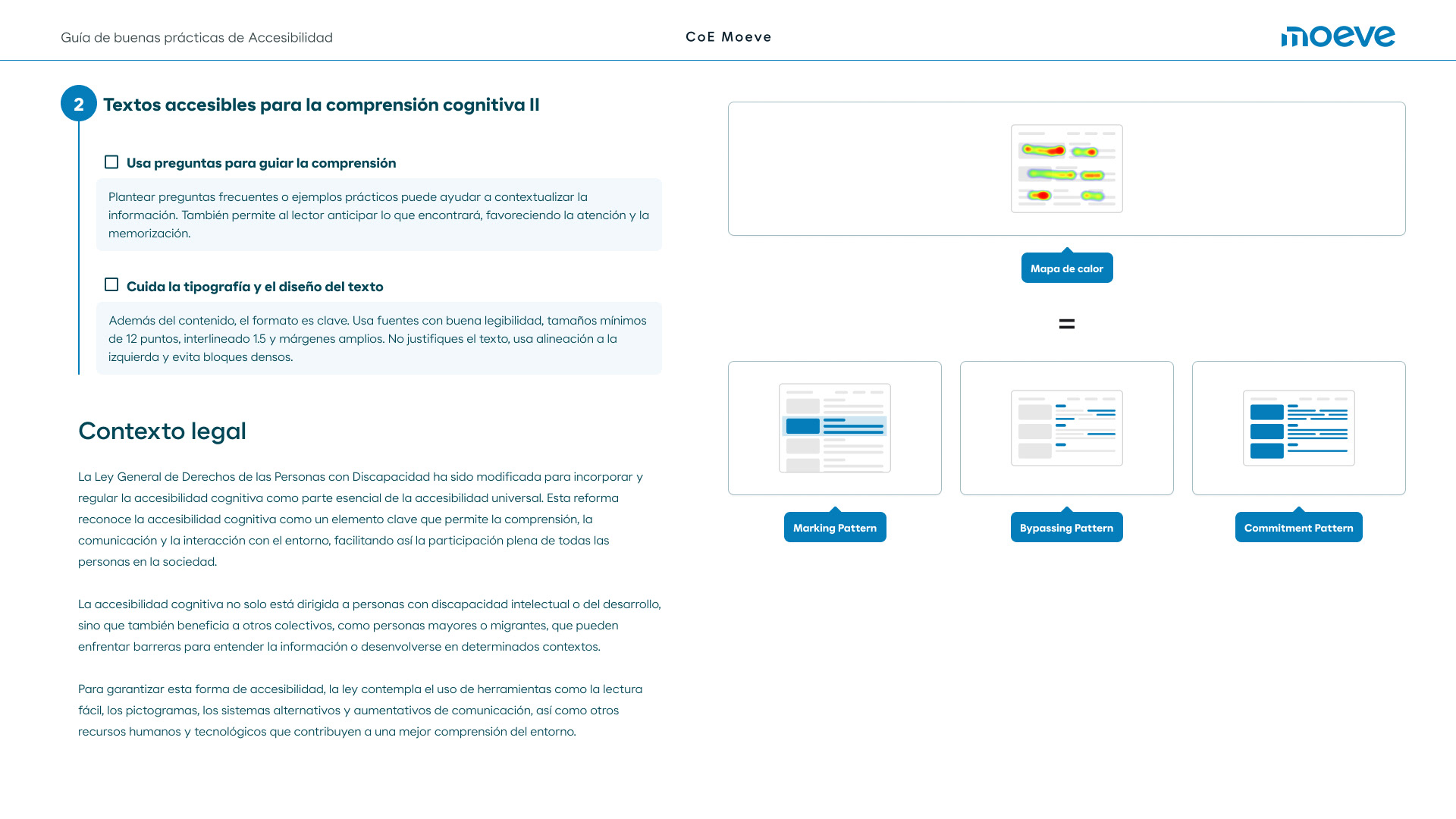 📙 A11y "Good practices guide" for designers and developers with another section for cognitive understanding. (Content). In this guide we divide the WCAG 2.2 regulation in 11 fields to easily understand this regulation and know how to apply it. It is for the whole team use and it should be read by all the development team (designers, front end, ux writers, etc) and also by the PO, to simplify the accessibility process. It is also customed with several frameworks illustration to better explain all the requirements of an accessible design.